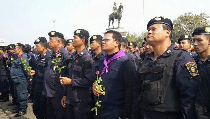 Thaksin Shinawatra's secret "black shirt" force of provocateurs, mostly made up of navy SEALS and marines, is back on the streets again for the first time since May 2010 and has infiltrated Suthep's rabble. If protests escalate they will seek to incite deadly violence ahead of King Bhumibol's birthday to discredit Suthep and his movement for good.He would also assure fellow Thaksin supporters that if provocateurs killed police "it would not discredit the government." It appears that indeed the regime plotted to kill its own police, carried out the attack on December 26 in Din Daeng district, and is now trying to capitalize on the resulting outrage by staging today's "police rally."